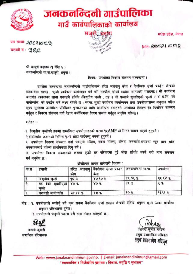 उपभोक्ता विवरण संकलन सम्बन्धमा ।