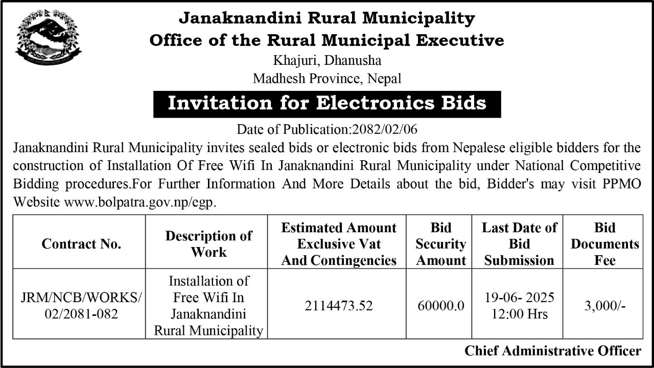 सार्वजनिक खरिद/बोलपत्र सूचना