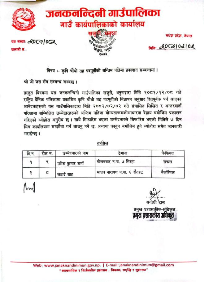 अन्तिम नतिजा प्रकाशन सम्बन्धमा ।