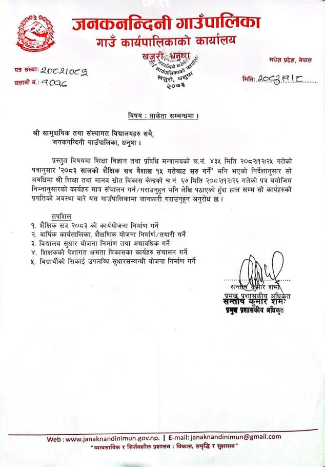 शैक्षिक सत्र २०८२ सालकाे जनकनन्दिनी गाउँपालिकास्तरीय कक्षा ८ काे वार्षिक परिक्षाकाे नतिजा प्रकाशन ।